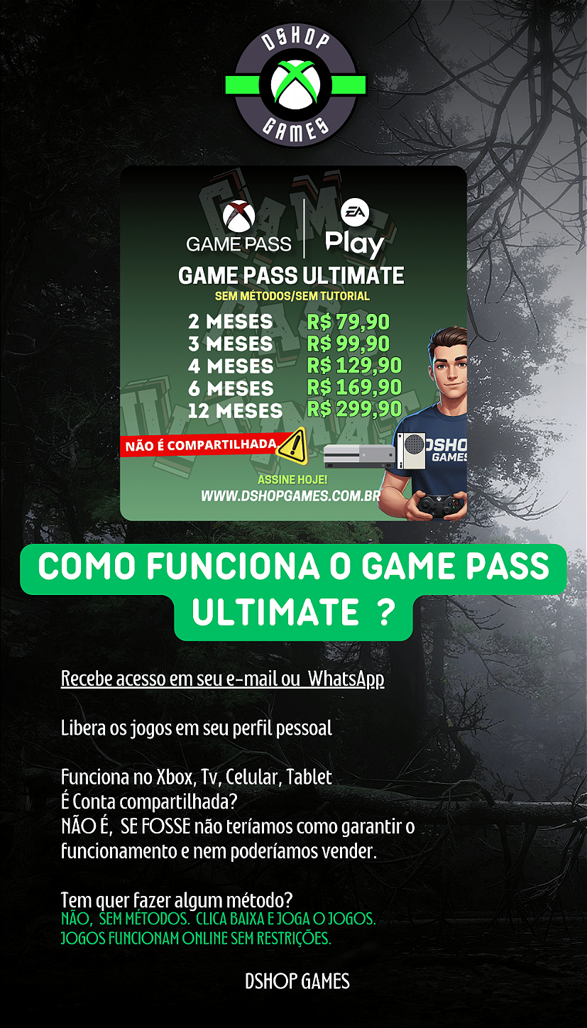Jogos Exclusivos Xbox: O Game Pass Ultimate oferece acesso a jogos exclusivos da Microsoft, como a série Halo, Gears of War, Forza Motorsport e muitos outros. Você pode jogá-los no dia do lançamento, sem custo adicional.